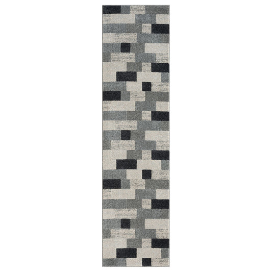 Kaza Tribal Carved Lines Cream Anthracite Rug