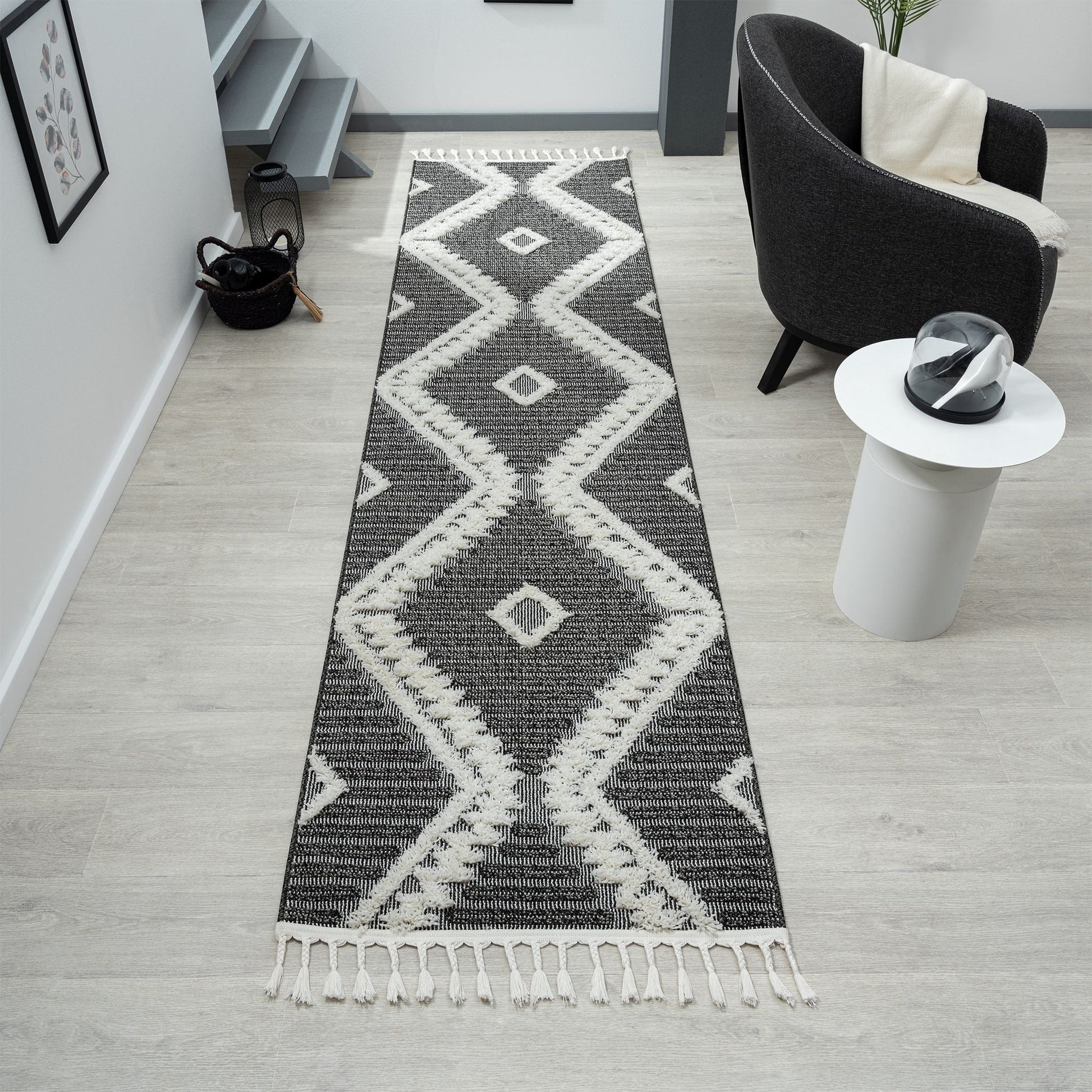 This quaint and cozy collection, with its minimalist style designs, is made from soft polyester and polypropylene, and has a high-and-low, cut and loop pile ranging from 8 to 28 mm. in height. The harmonious colour scheme used in this fashionable collection is complemented with versatile geometric motifs, power loomed into a durable cotton and jute base and finished with braided fringes. This highly decorative range also has shed-resistant and anti-static properties, and is easy to maintain.