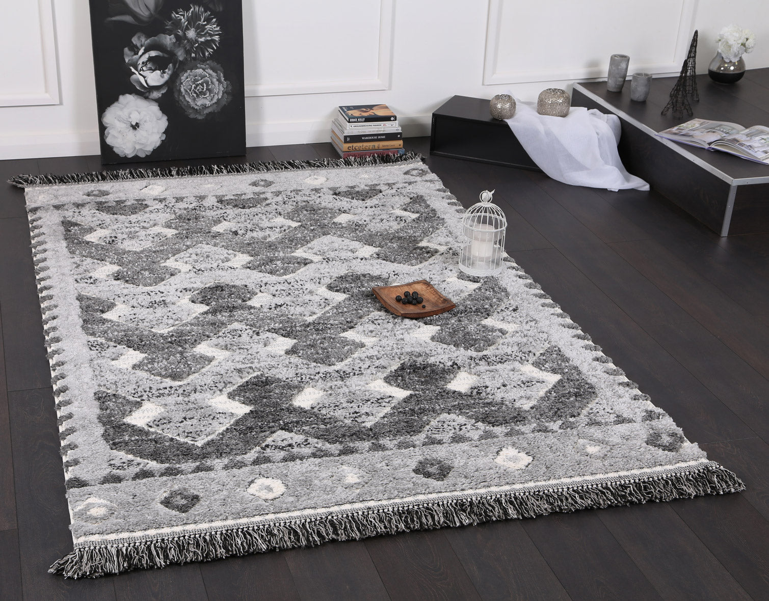 The multi-level loop design will make you feel like you've stepped off the rocky edge onto a cloud, cushioning your feel with plush, polyester. Its use of tribal, and geometric designs will make it a staple for a designer at any level.